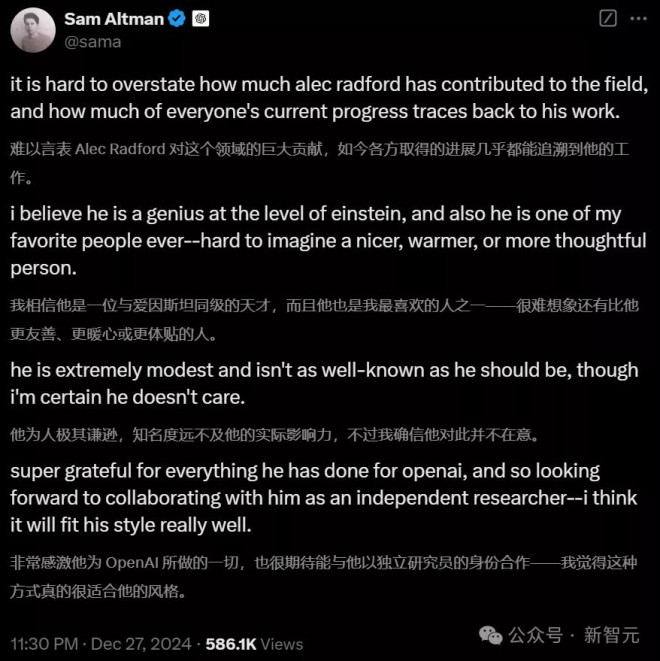 与此同时,奥特曼发文点名OpenAI研究员(大部分已经离职),表示感谢。