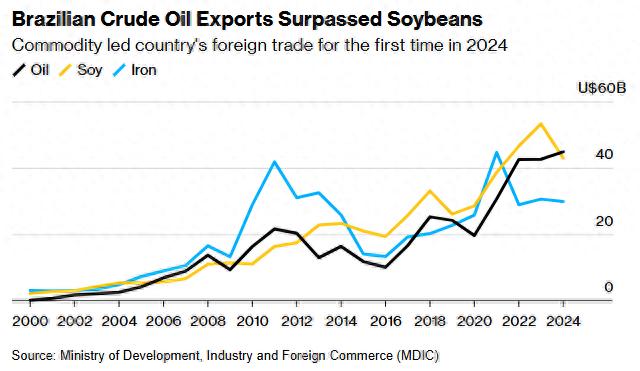 财联社1月7日讯(编辑 潇湘)史上首次,石油成为了全球农业大国巴西的第一大出口产品……根据巴西贸易部周一公布的数据,2024年巴西原油出口额增长5%,达到448亿美元,这是这一拉美最大经济体的石油出口额首次超过所有其他商品的对外销售额——大豆被超越后已落至第二。