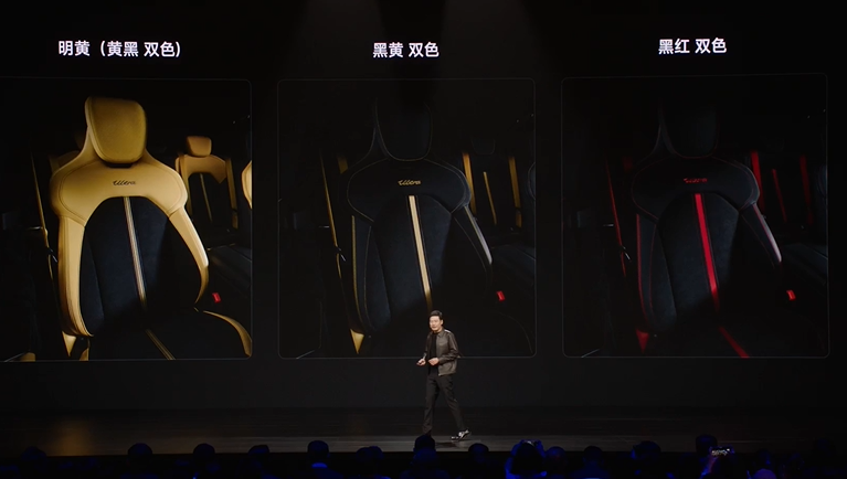 雷军介绍,小米SU7 Ultra有5种外观颜色:闪电黄、太空银、鹦鹉绿、珍珠白、曜石黑。有三种内饰颜色可选。