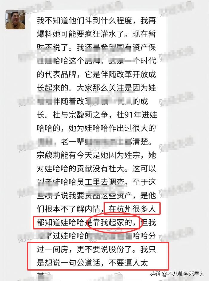 他说娃哈哈是靠他起家的,这点很多杭州人都知道,并极其清高的宣称,自己从未分过娃哈哈一间房,更别说股份,如今的表态,只是要为正义发声。
