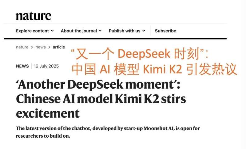 英国《自然》杂志网站16日发表文章说,中国人工智能(AI)模型Kimi K2发布后引发轰动,世界迎来“又一个DeepSeek时刻”。中国在6个月内推出第二款令人印象深刻的模型,表明这一成功并非偶然。