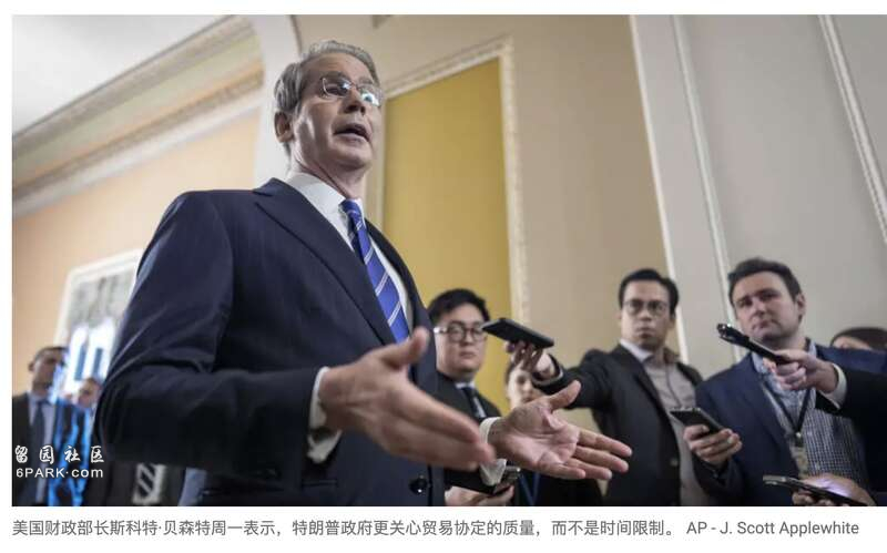美国财政部长贝森特周一表示,特朗普政府更关心贸易协定的质量,而不是时间限制。此前美国政府把8 月1日当成达成贸易协议的最后期限,否则有关各国将面临高额关税。