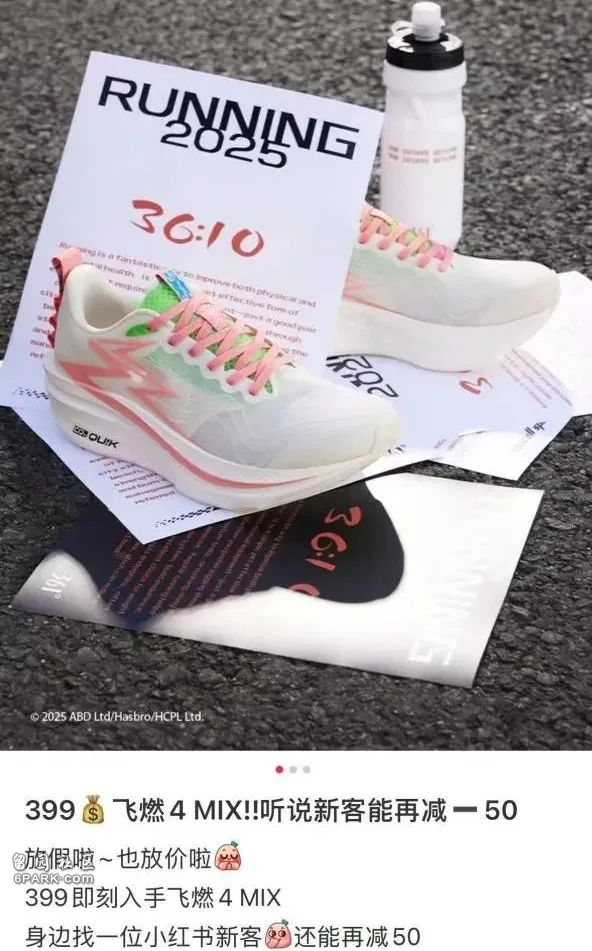 361度推出的“碳板”跑鞋,以突出的脚感与推进力,售价仅为同类Nike鞋的60%。
