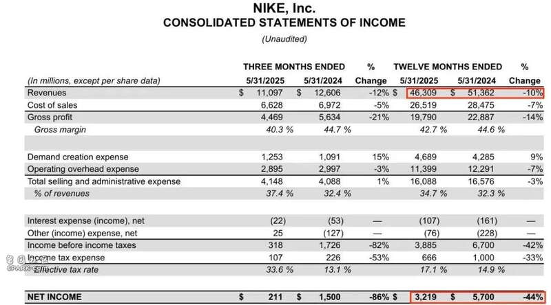 在一边是国潮突飞猛进、国产品牌灵活应变,一边是年轻人消费观彻底洗牌的市场夹击中,耐克在中国市场的日子,开始不太好过了。2025财年(截至2025年5月31日)的财报数据为这一趋势盖棺定论。