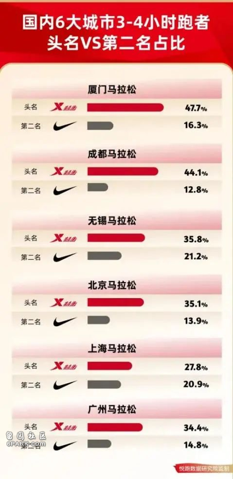 特步更是凭借6冠王的傲人战绩,远超耐克和阿迪,成为马拉松爱好者的新宠。