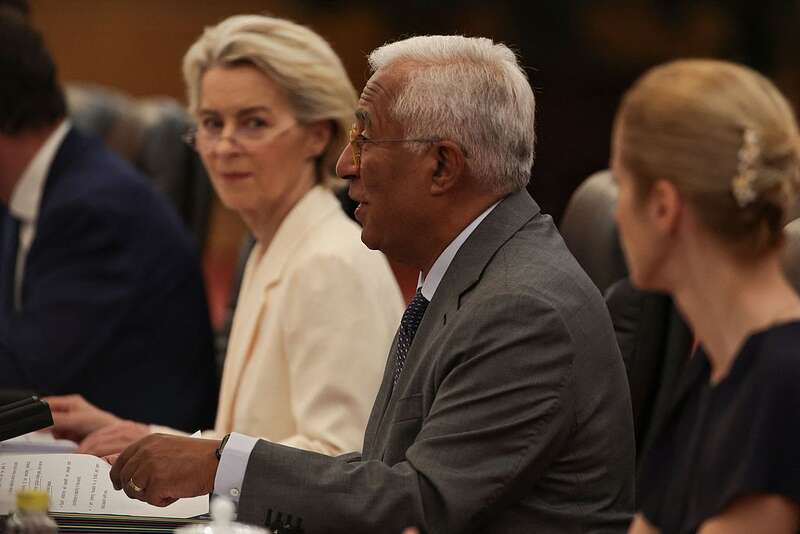 7月24日,北京,欧洲理事会主席科斯塔和欧盟委员会主席冯德莱恩在北京人民大会堂出席第二十五次中国—欧盟领导人会晤。视觉中国