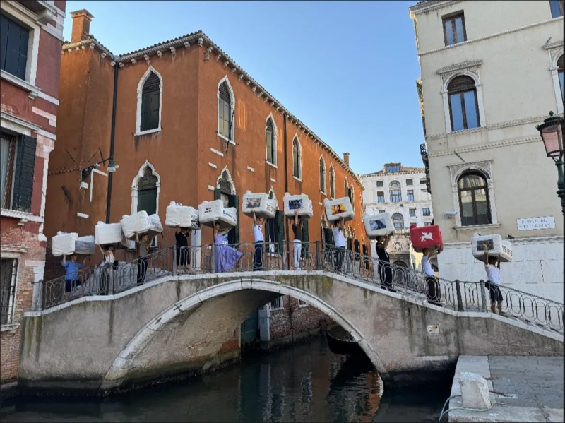 一个年过半百的光头男,头顶沙发参加威尼斯双年展,去法国凯旋门前跳科目三……