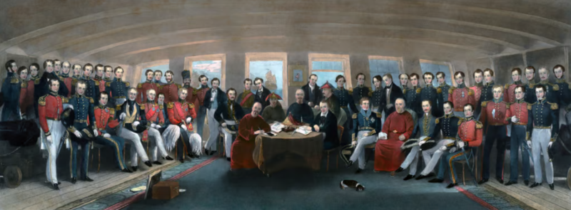 1842年8月,一队清朝官员登上停泊在南京江面的英国军舰“康华丽”号,签署了中国近代史上第一份不平等条约——中英《南京条约》。2025年7月,欧盟委员会主席冯德莱恩匆匆赶往美国总统特朗普位于英国苏格兰的特恩贝里高尔夫度假村,敲定了一项被欧洲政要斥为“不公平”的贸易协议。