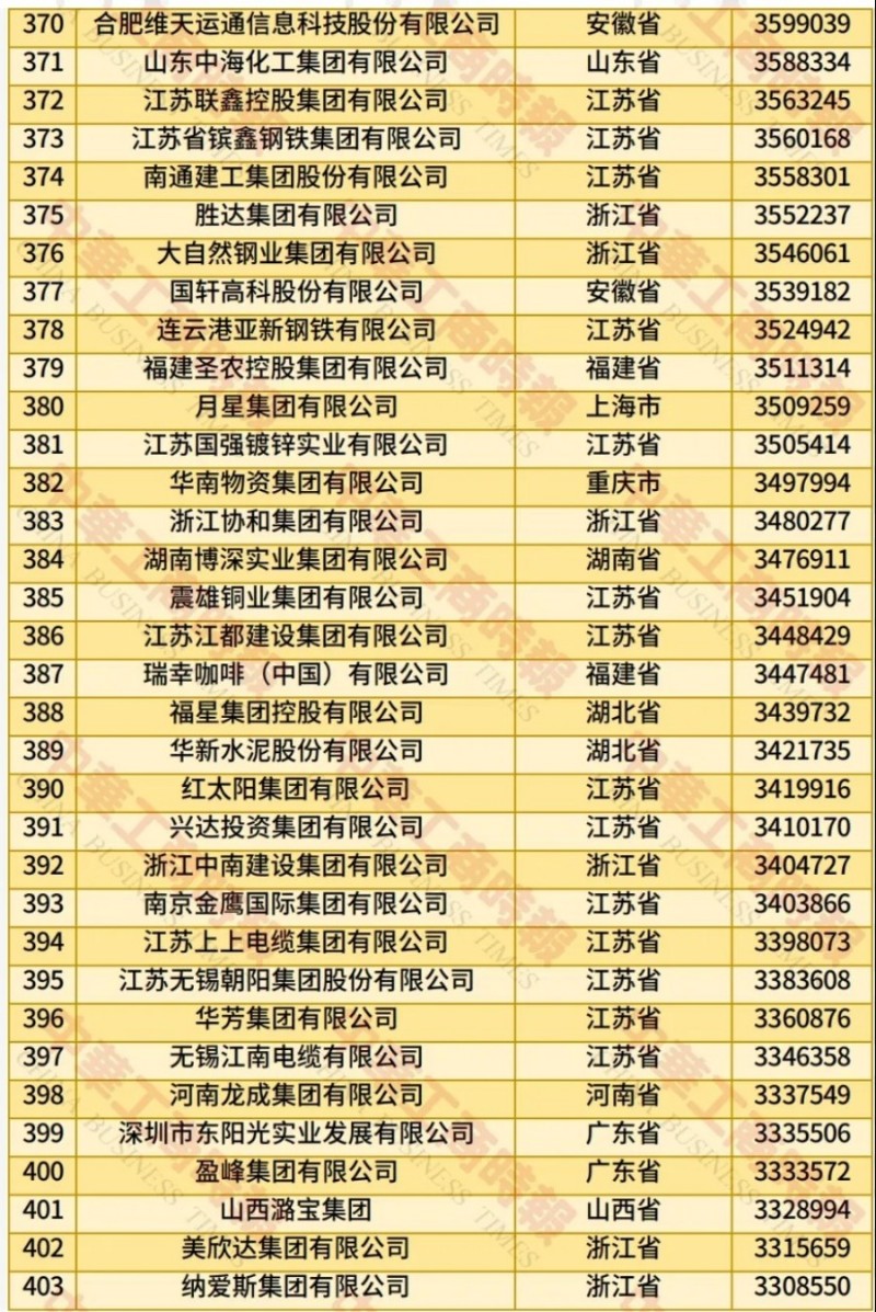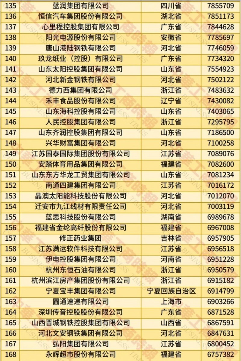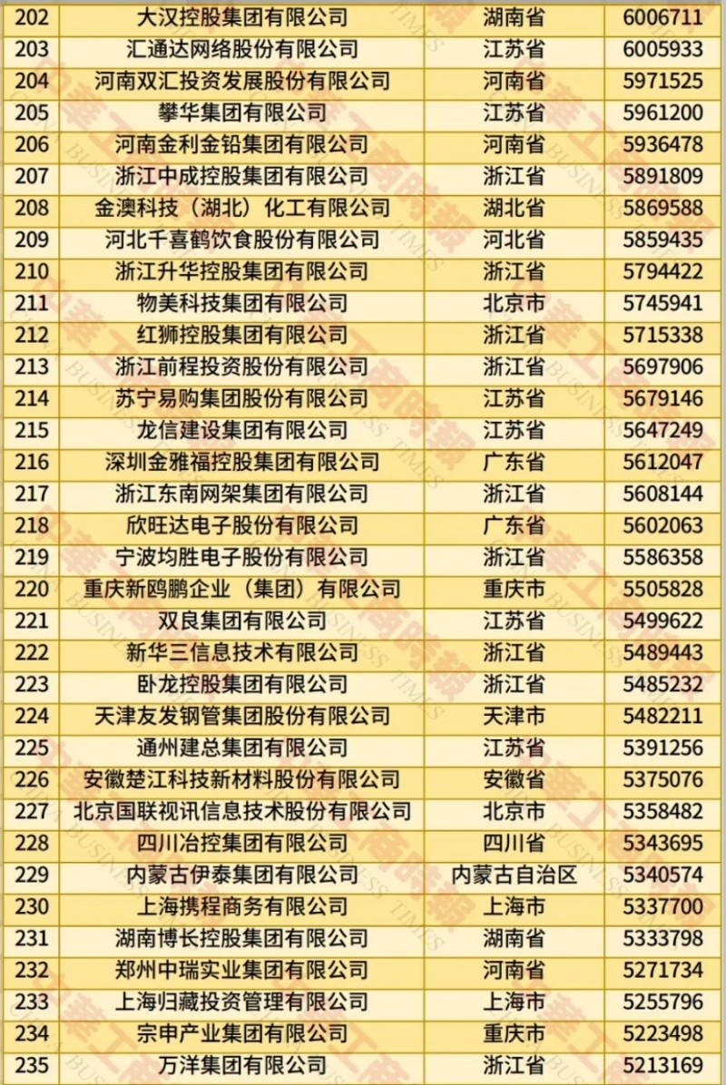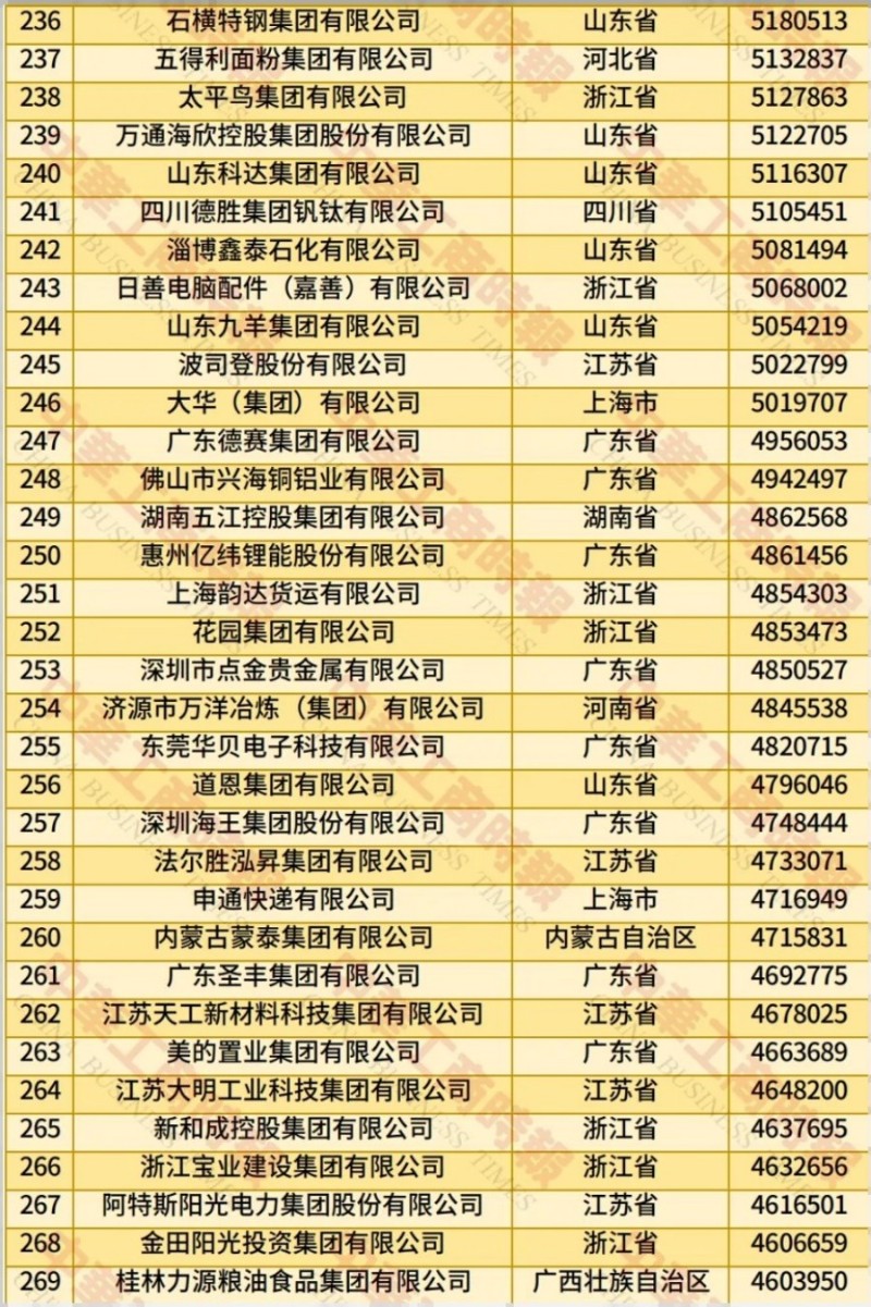 记者了解到,此次民营企业500强入围门槛增至270.23亿元;营业收入总额达到43.05万亿元;净利润合计1.80万亿元;研发费用总额1.13万亿元,研发人员总数115.17万人,平均研发经费投入强度2.77%;纳税总额达1.27万亿元,纳税额超过10亿元的企业有240家,占500强比例为48.00%。