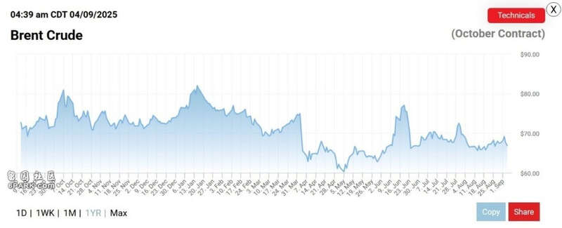 9月4日,WTI石油期货价格下跌1.08%至每桶63.28美元,布伦特石油期货价格下跌1.02%至每桶66.91美元。自今年4月份以来,布伦特油价90%的交易日价格低于每桶70美元,这是俄罗斯入侵乌克兰以来首次出现如此长时间的油价低迷。