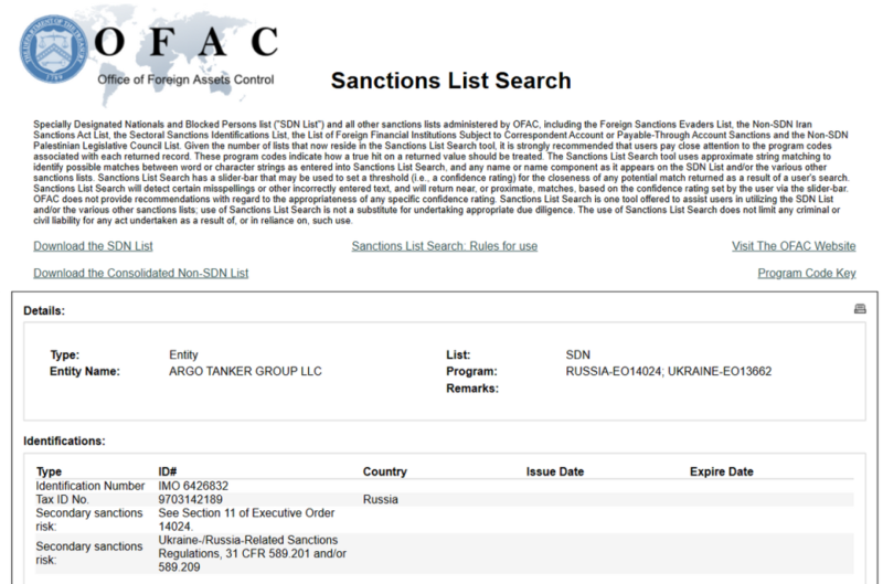 根据SPARK的数据,Agro Tanker Group的办公室位于莫斯科市,隶属于ATG Holding JSC,专业从事原油销售。自2025年1月以来,该公司一直受到美国制裁(见上图)。