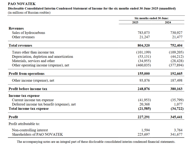 .彭博社上周报道称,俄罗斯第二大石油公司卢克石油公司上半年利润大幅下降51%。与此同时,俄罗斯天然气工业股份公司今年前六个月利润下降54%,该公司将利润下降归因于税收增加。俄罗斯最大的民营能源公司联咏科技,上半年的利润下降了34.2%(上表为其财报截图)。