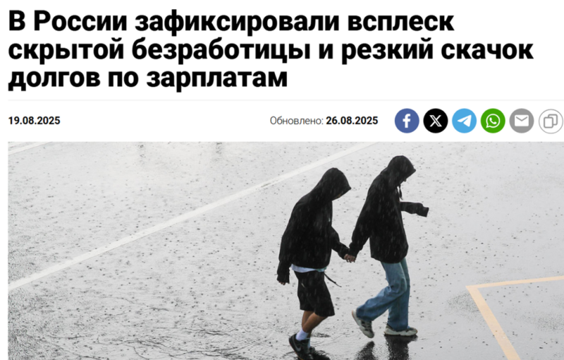 俄罗斯独立工人联合会 (FNPR)称,根据对联合会下属组织的监测,俄罗斯所有企业7 月份拖欠工资增加了25%——高达1700亿卢布,面临解雇风险的员工人数比去年同期增加了1.5倍,闲置工作岗位的数量增加了三分之一。