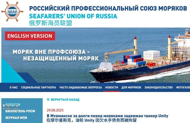 一、俄罗斯海员联盟以欠薪为由,扣留了影子船队中的团结号油轮。