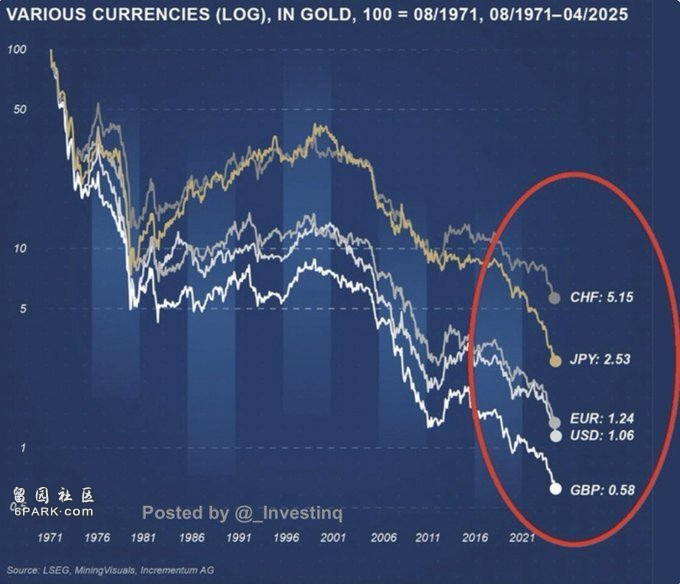 而若以黄金衡量,美元自1971年以来其实已损失了近99%的购买力。