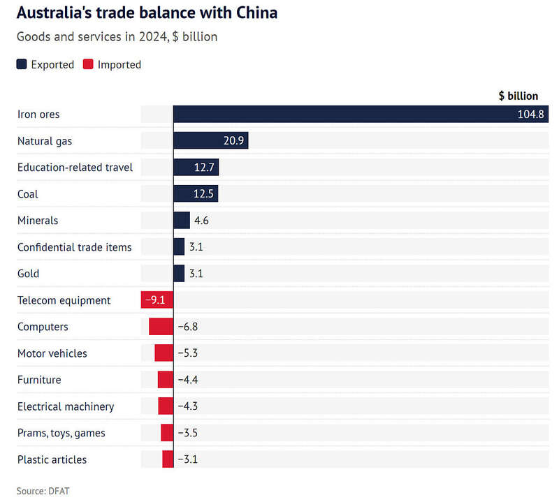 2024年,澳中双边贸易额接近3116亿澳元,中国占澳洲出口总额的近三分之一,许多曾受制裁的行业在恢复出口后正在反弹。