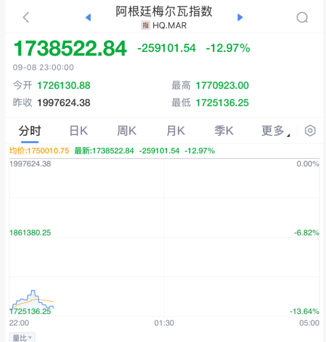 9月8日晚间,阿根廷资产遭到了全线的抛售。阿根廷股市暴跌约13%。