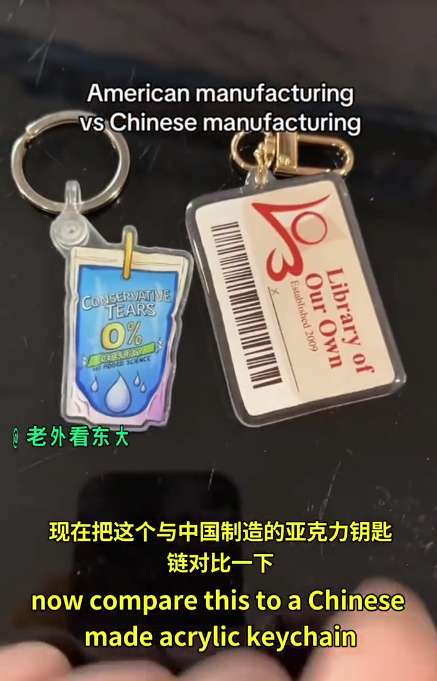 Tiktok上曾有一个美国老板吐槽,她要定制一批亚克力,找了一家美国工厂定制了一个亚克力钥匙扣,结果质量一塌糊涂。