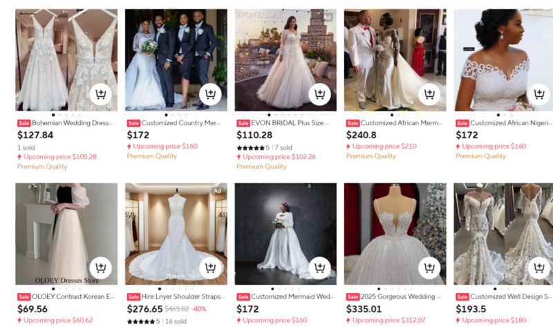 一件普通的中国婚纱售价仅几十到几百美元,价格远低于本土品牌。