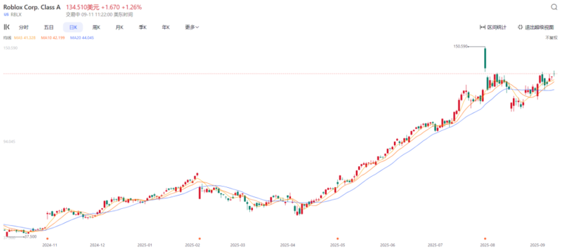 更为亮眼的是其用户数据的强劲增长。截至第二季度末,Roblox的日均活跃用户(DAU)数量已攀升至1.118亿,同比增长41%。这一数字不仅巩固了Roblox作为全球最大青少年互动社区的地位,也意味着其平台生态的活力和吸引力达到了新的高度。