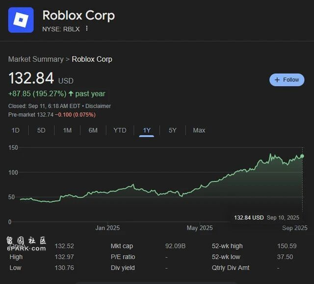 一边是资本市场对其商业前景的无限遐想与追捧,股价过去一年(12个月)飙升超过230%、年内创下股价历史新高,市值高达930亿美元,在《种植花园》(Grow a Garden)等爆款游戏的推动下,其财务数据光彩夺目 ;
