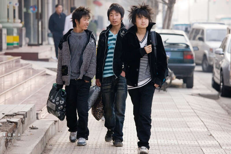 2008年,西安街头的行人。今天的年轻人表示,他们很怀念本世纪初那种更自由、更具表现力的时尚风潮。 Tim Graham/Getty Images