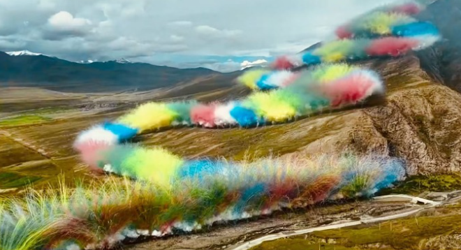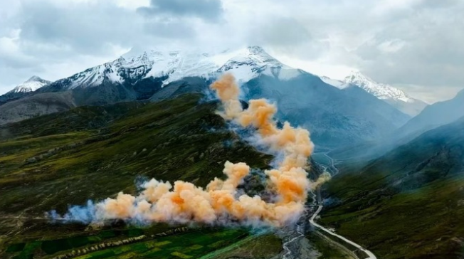 9月19日,始祖鸟联合艺术家蔡国强在西藏喜马拉雅山脉江孜热龙地区(海拔约5500米)举办“升龙”艺术项目,通过火药爆破在山脊点燃三幕烟花形成动态“龙形”景观,引发网友及户外爱好者质疑,认为火药爆炸会干扰动植物生态。