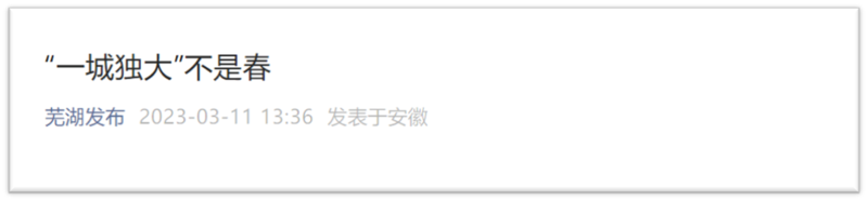2023年,安徽芜湖就公开挑战省会合肥的权威,先是通过其官方平台发布了一篇《“一城独大”不是春》的文章,直接明示合肥分权。