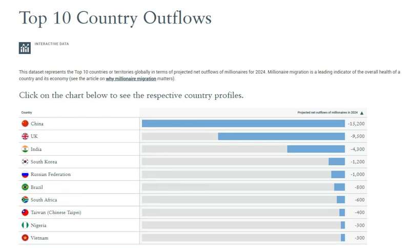 相关数据显示,2024年就有1.52万名高净值人士移民,位居全球百万富翁流失之首。