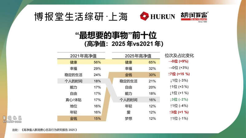 报告中,“最想要的事物”第一第二名,依然稳定发挥,分别是健康和幸福,但比例都有不同程度地增加,显然这两项比往年更重要。