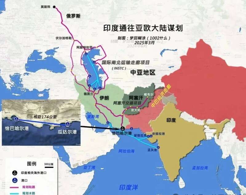 印度将伊朗恰巴哈尔港作为对抗我国“一带一路”倡议的桥头堡和核心枢纽。通过它,印度可以绕开巴基斯坦所阻隔的陆路通道,实施国际南北运输走廊和连接阿富汗互联互通项目,通往俄罗斯和中亚等亚欧大陆,使过境时间减少40%,成本减少近三分之一,是对抗我国援建瓜达尔港的利器。美国的制裁击中了印度“连通中亚”政策的核心。此前美国虽然实施了对伊朗的全面制裁,但对印度伊朗合作的恰巴哈尔港项目给予了默认豁免,以更好地借用印度对抗我国。2025年2月特朗普宣布这一决定的时候,正值莫迪在特朗普上台后首次访问美国之前,莫迪重申支持该港口。而如今7个月过去,印度面临制裁即将实施的局面,表明两国并没有达成解决方案。