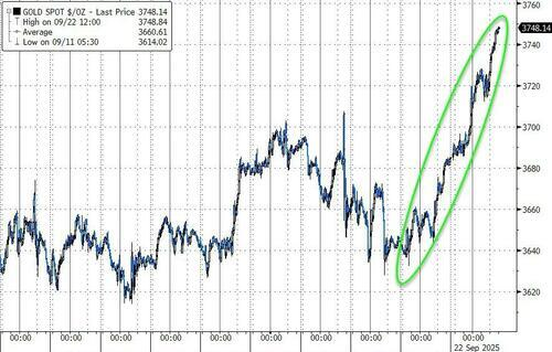 周一,纽约商品交易所12月交割的黄金期货合约结算价上涨69.30美元,涨幅1.9%,至每盎司3775.10美元,创下主力合约有史以来的最高收盘价。根据道琼斯市场数据,这是黄金价格今年迄今第三十六次刷新收盘纪录。