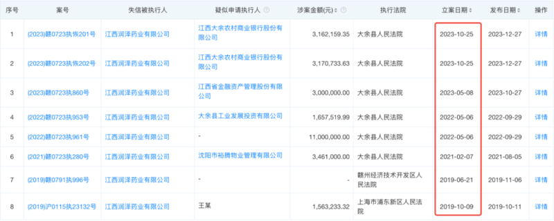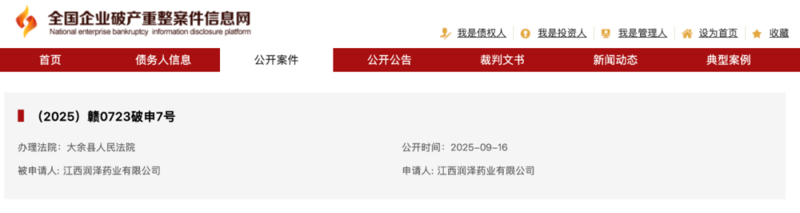 9 月 16 日,全国企业破产重整案件信息网更新了一则案件开庭审理通知,大余县人民法院受理了江西润泽药业有限公司的破产申请。