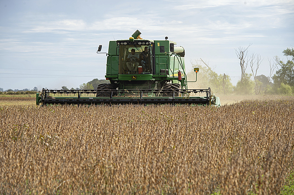 阿根廷农民收割秋季大豆。 视觉中国