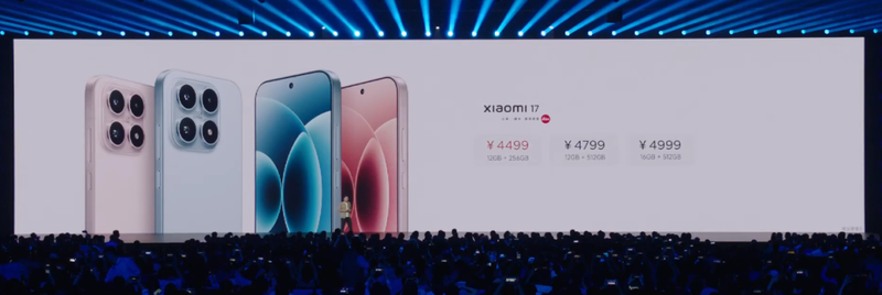 在发布会上,雷军发布全新小米17系列手机,起售价4499元(12GB+256GB)。