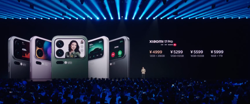 发布会上,小米宣布Xiaomi 17 Pro Max将直接从512GB版本起步,售价5999-6999元。