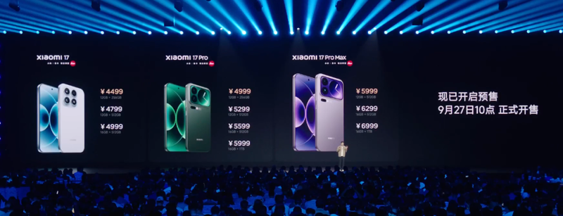 据悉,小米17系列已开启预售,9月27日10点正式开售。