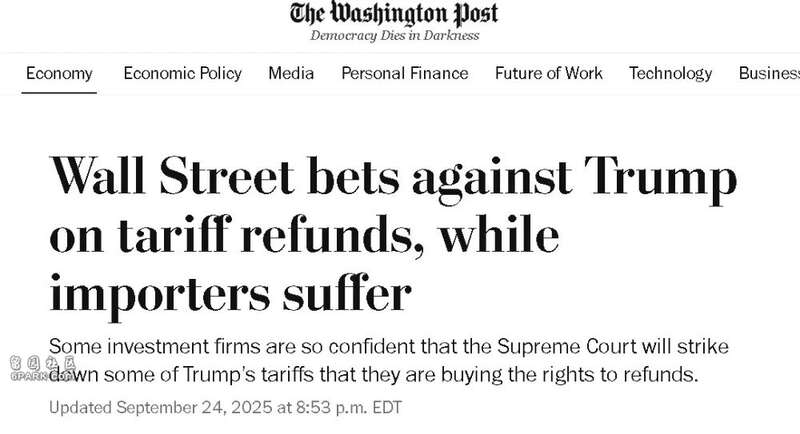 原来,美国最高法院预计将在几个月内就美国政府加征关税的政策是否违反法律做出裁决,美国华尔街的不少投资公司竟从中嗅到了商机。