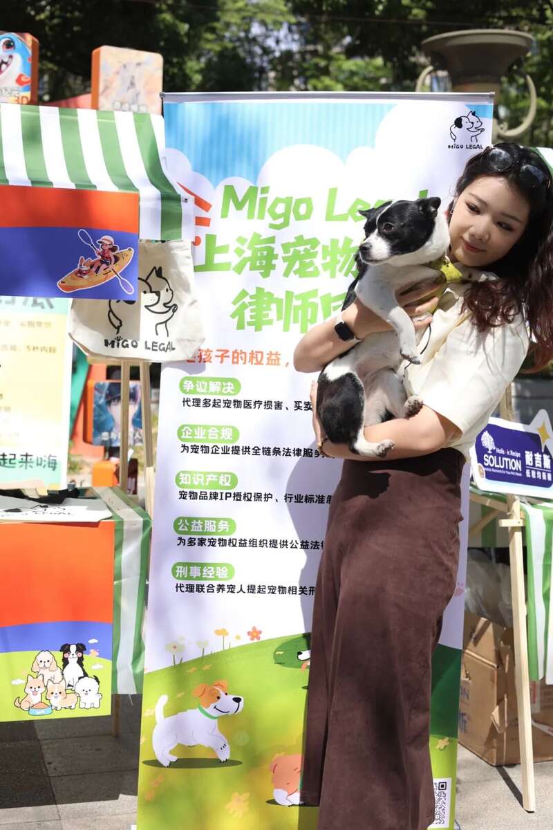 左图:徐千玉团队主办的宠物法律咨询活动右图:团队中张律师与参加活动的小狗其中,让徐律师印象最深刻的是她代理的两起上海的宠物投毒案件,目前都已经刑事立案。