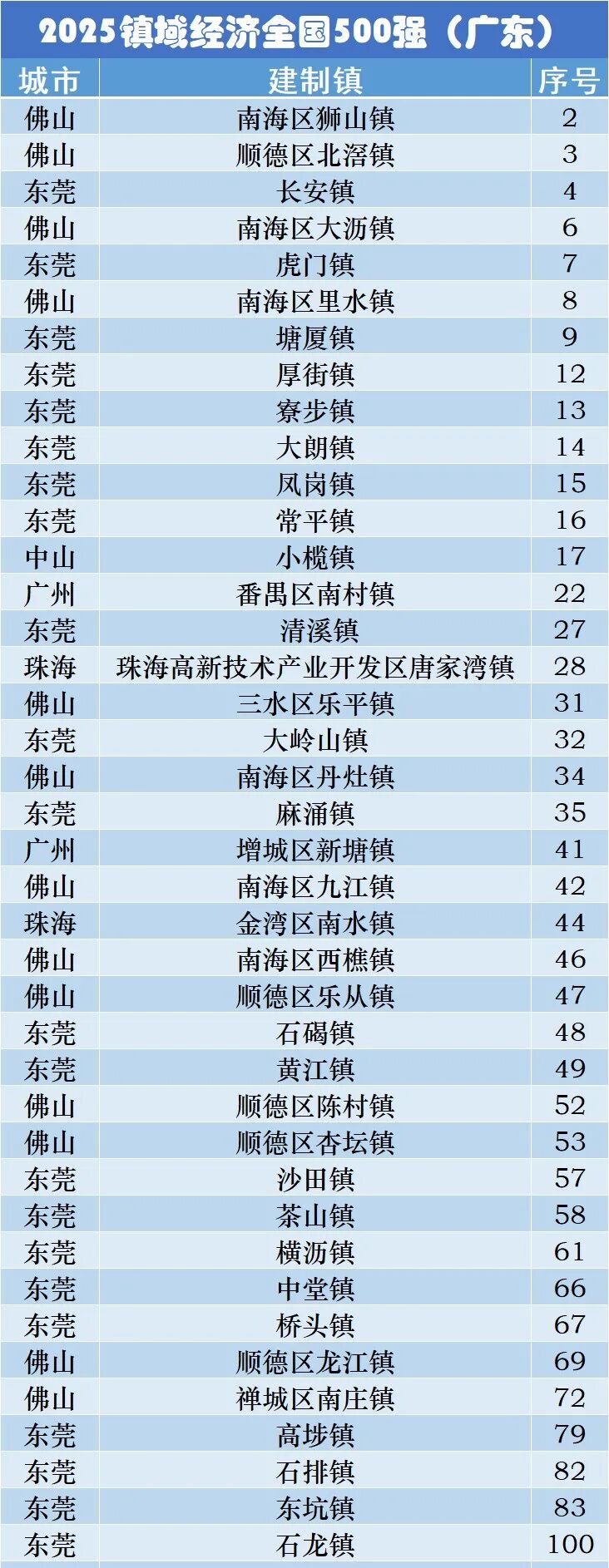 经过上一轮调整,一批千亿GDP强镇诞生,40镇入围全国百强镇,广东由此成为“强镇经济”的领跑者。
