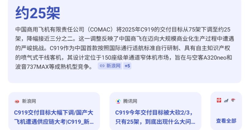 而对于先进的客机而言,能够制造并取代波音和空客的企业,还未出现。我们的C919经过举国十多年的努力,至今也依赖美国的航空发动机,今年C919的交付量目标,因此从75架下调至25架。