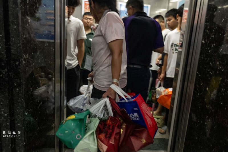 进入赛格广场狭小的电梯。