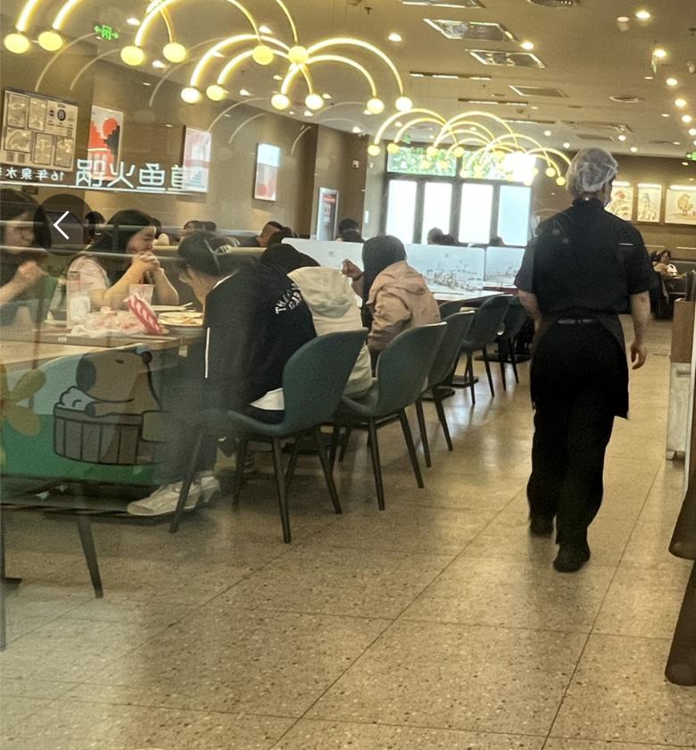 当凤凰网《风暴眼》试图与其进一步交流时,该员工接到一通电话,随即被叫走。几分钟后,他匆匆返回拿起遗漏在桌上的后厨头套,目不斜视地离开了。