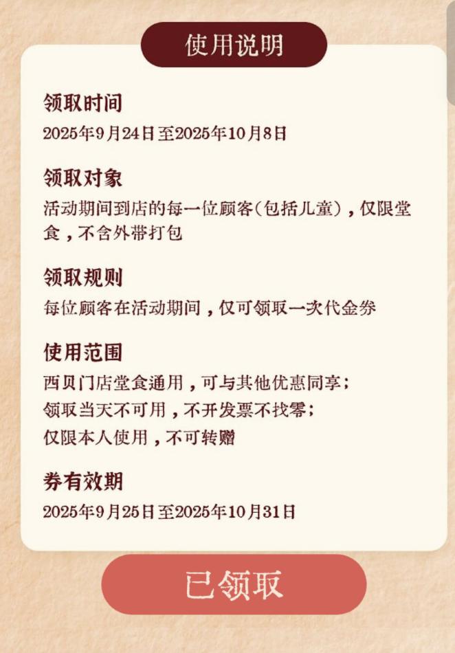 为了吸引顾客,西贝在9月24日期推出“西贝请您吃饭”,面向全部顾客发放100元堂食代金券。