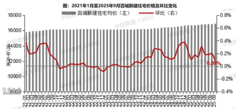 10月1日,中指研究院发布数据显示,9月全国100个城市新建住宅均价为16926元/平方米,环比微涨0.09%,同比上涨2.68%;二手住宅均价为13381元/平方米,环比下跌0.74%,同比下跌7.38%。