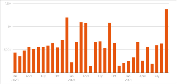 而印度恰好接住了这波需求。作为亚洲关键的灵活供应方,印度炼油厂约三分之一的原油来自俄罗斯,如今正开足马力将过剩产能转化为出口优势。Kpler的船运追踪数据显示,9月印度柴油总出口量达近300万吨,创下五年以来最高水平。
