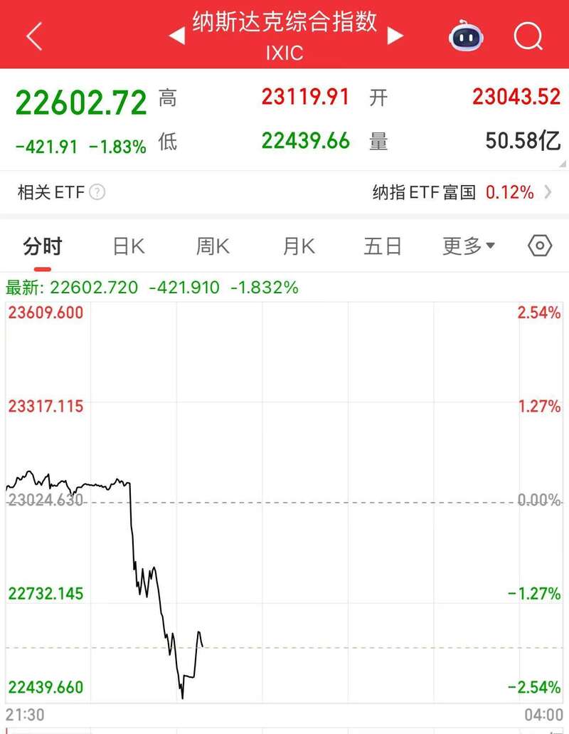 北京时间10月10日晚间,美股剧烈震荡,三大指数全面跳水。截至北京时间11日0时30分许,纳斯达克指数盘中下跌453.99点,跌1.97%;道琼斯指数跌493.52点,跌幅1.06%;标普500指数跌96.89点,下跌1.44%。恐慌情绪在市场蔓延,纳斯达克指数一度暴跌2.54%。