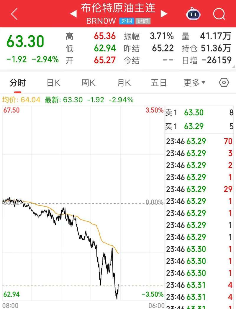 油价延续跌势。截至发稿,布油跌近3%,美油跌超3%。
