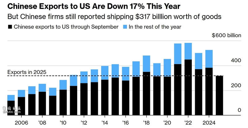 据报道,中国每天仍有价值约10亿美元的货物跨太平洋运往美国,且9月出口额较8月有所回升。尽管过去半年,中美整体贸易额降幅达两位数,但部分产品近期的出口量较2024年反而出现增长,顶住了两国间的贸易紧张局势。