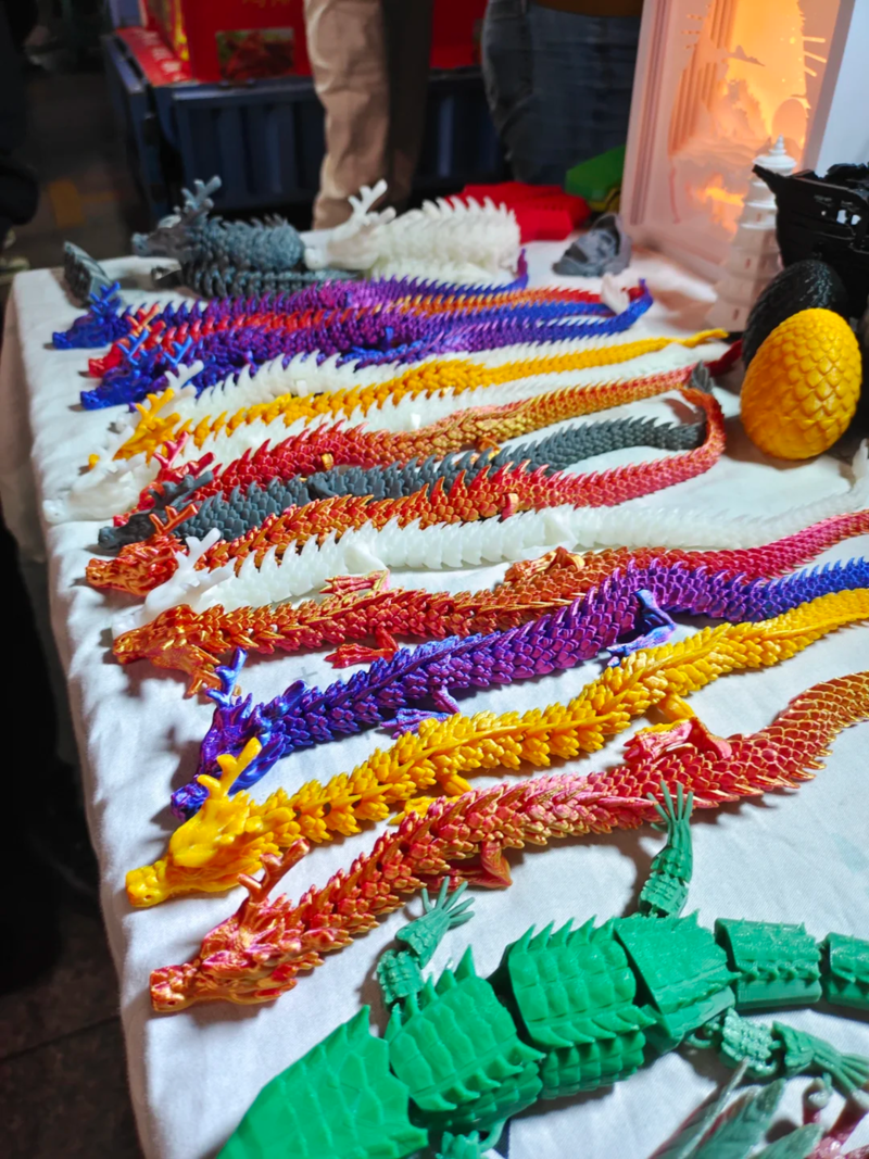 街头巷尾,越来越多的夜市摊位开始摆上3D打印出来的产品,龙蛋、关节龙、关节蛇成了新一代「地摊网红」。